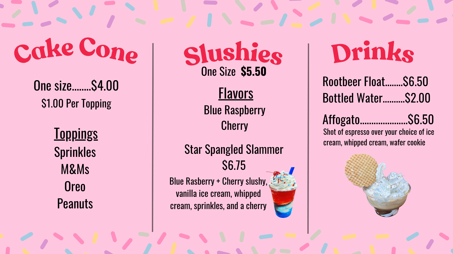 Full service: we will bring our freezers to serve your group during your event, we require an outlet to plug into. We also offer a pickup option.