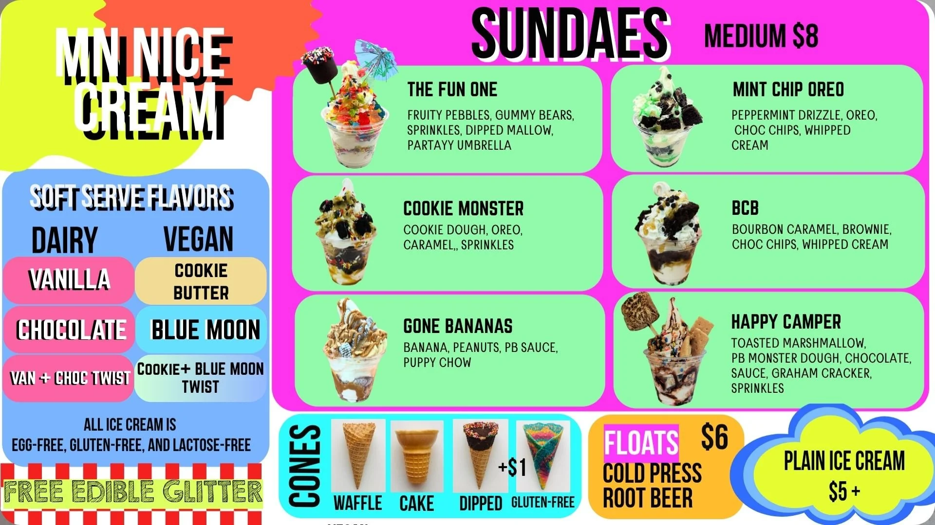 Minnesota Nice Cream was launched by Katie Romanski in March 2016. Inspired by her memories of cold soft serve on hot Mid-Western summer days, Romanski sought to provide customers a nostalgic dessert experience with a twist. Along with the help of the sweetest little truck in town, Romanski has traveled the Midwest sharing her delicious masterpieces. Minnesota Nice Cream has been a featured truck at Rock the Garden (2016), Eaux Claires Music Festival (2016, 2017, 2018), and a staple at breweries and block parties throughout Minnesota. Minnesota Nice Cream was proud to be named one of the Top 5 Food Trucks in Minneapolis - St. Paul by City Pages in 2017, and featured in The Star Tribune, WCCO, and Buzzfeed.
